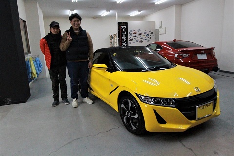山口県よりホンダS660のご入庫です!ボディカラーは人気のカーニバルイエロー!