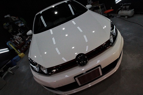 ピュアホワイトです!施工はボディにはG’ZOX艶プラスです。経年車でしたが磨きで