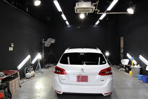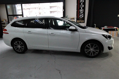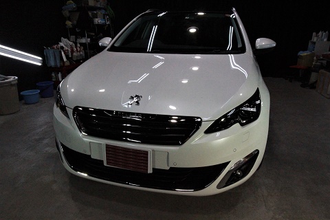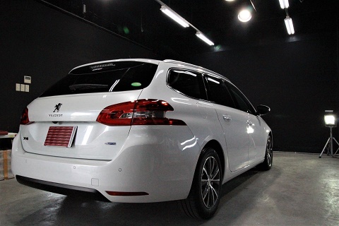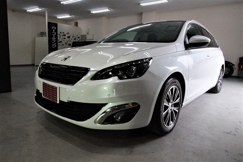 大阪市よりプジョー308のご入庫です!ボディカラーはホワイトパール!施工はボディには