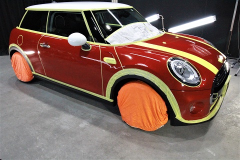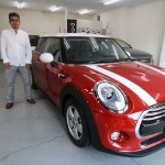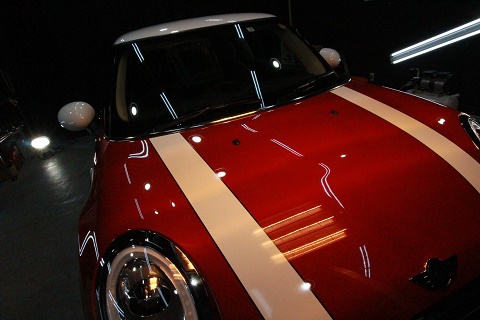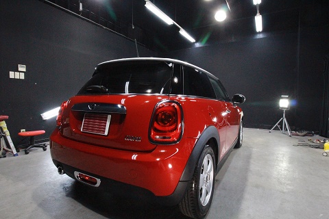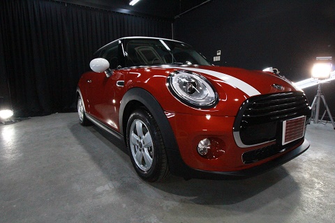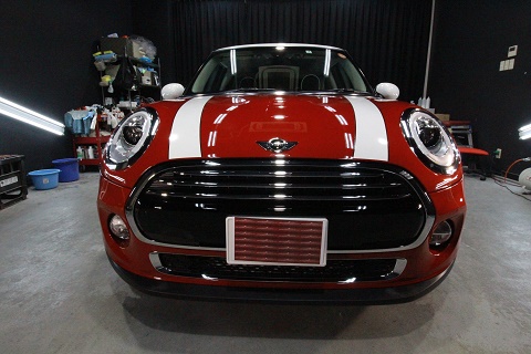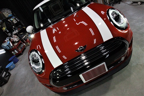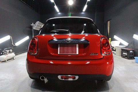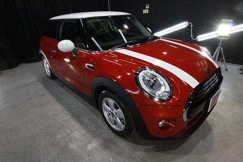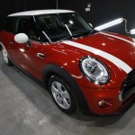 大阪府よりミニクーパーのご入庫です!ボディカラーはブレイジングレッド&ルーフホワイト!