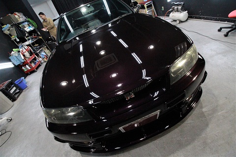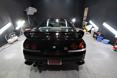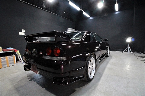 大阪府豊能郡より日産GTR R33のご入庫です!ボディカラーはミッドナイトパープル!施工はボディに