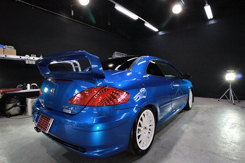 大阪市東淀川よりプジョー307cのご入庫です!ボディカラーはエーゲブルー!施工はボディには 疎水性のG’ZOXハイドロフィニッシュです。十三年前のお車でボディの状態は傷が多かったですが磨き で最高に輝かせております!この度は当店にお任せ頂き有難うございました !(^^)!
