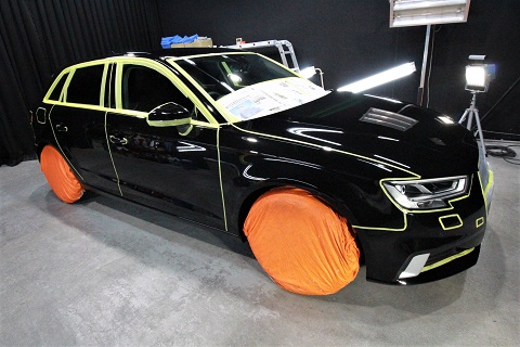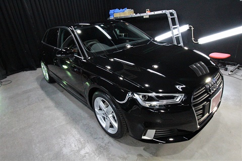兵庫県西宮市よりアウディA3のご入庫です!ボディカラーはミストブラック!施工はボディには