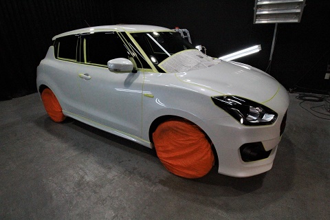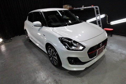 大阪府羽曳野市よりスズキスイフトRSのご入庫です! ボディカラーはピュアホワイト。施工は