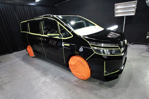 大阪府摂津市よりトヨタヴォクシーのご入庫です! ボディカラーはトヨタのブラック202!施工は