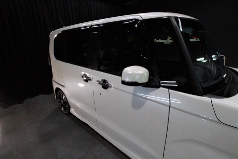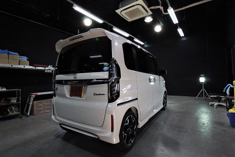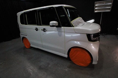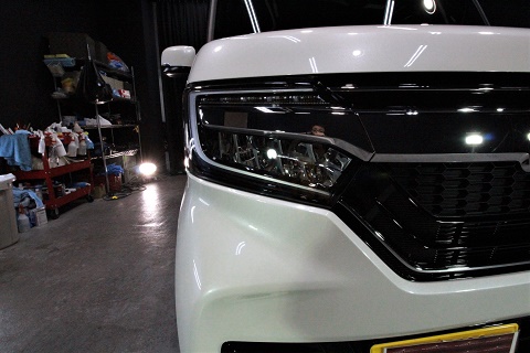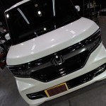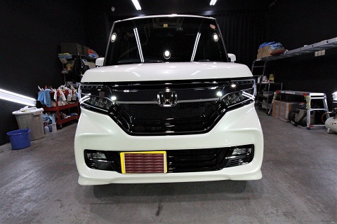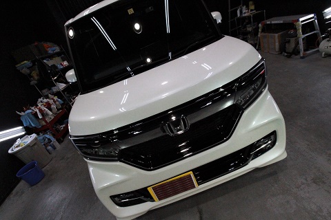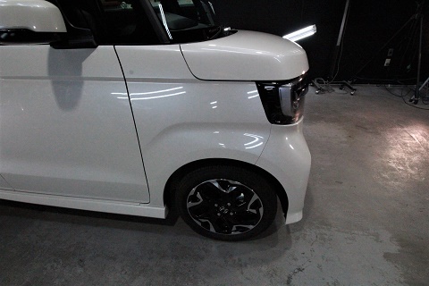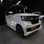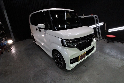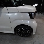 ホンダNボックスのご入庫です! ボディカラーはプレミアムホワイトパール! 施工はボディに