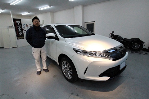 大阪府豊中市よりトヨタハリアーのご入庫です! ボディカラーはホワイトパールクリスタルシャイン