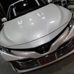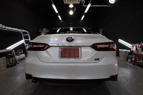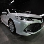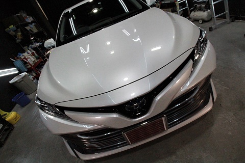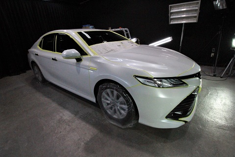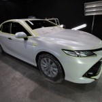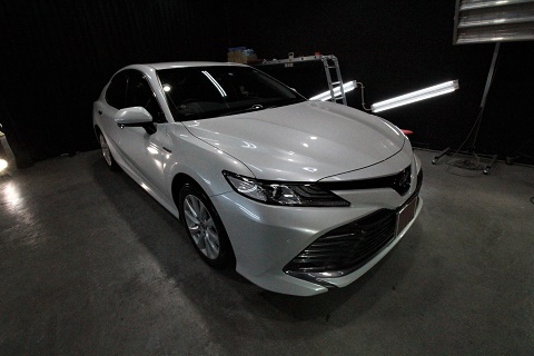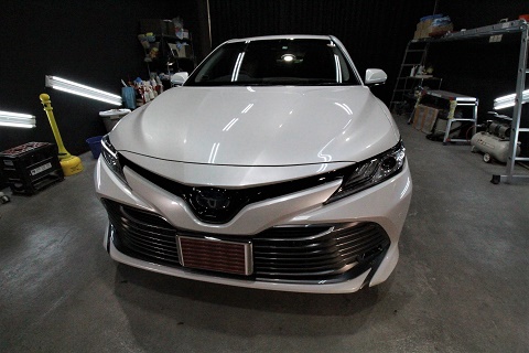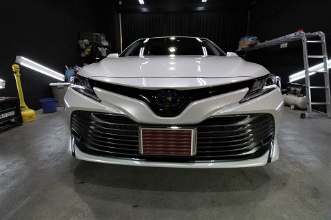 新型トヨタカムリのご入庫です! ボディカラーはプラチナホワイトパールマイカです!施工は