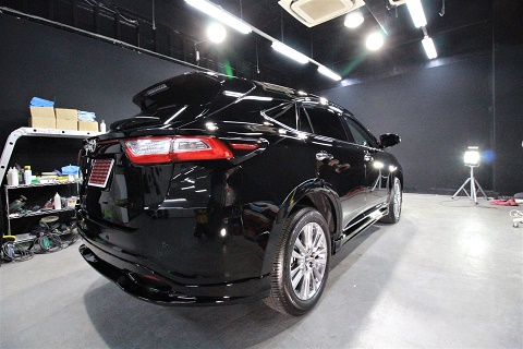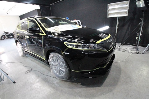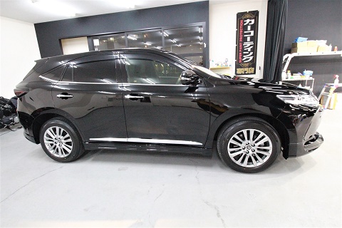 大阪府大東市よりトヨタハリアーのご入庫です! ボディカラーはトヨタのブラック202!施工は