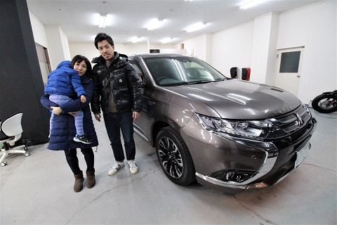 三菱アウトランダーPHEVのご入庫です!ボディカラーはクォーツブラウン!施工はボディには