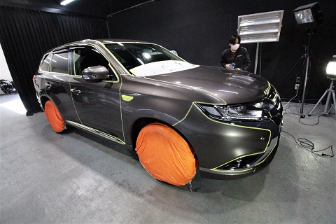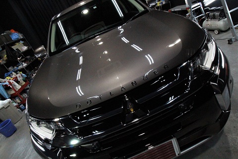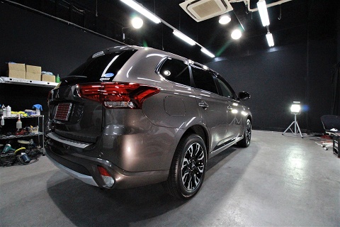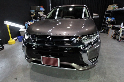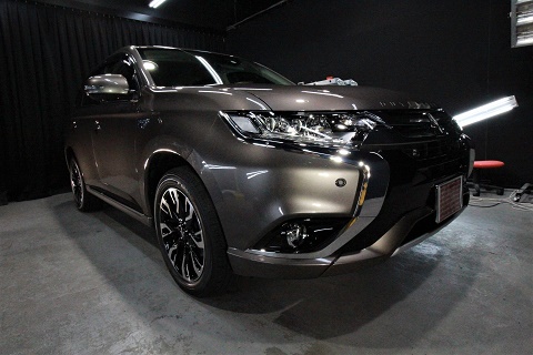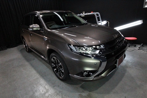 三菱アウトランダーPHEVのご入庫です!ボディカラーはクォーツブラウン!施工はボディには