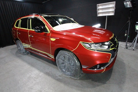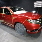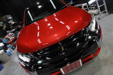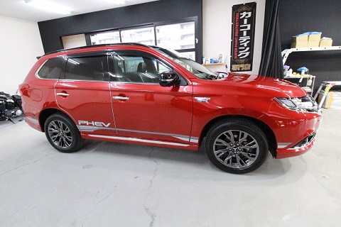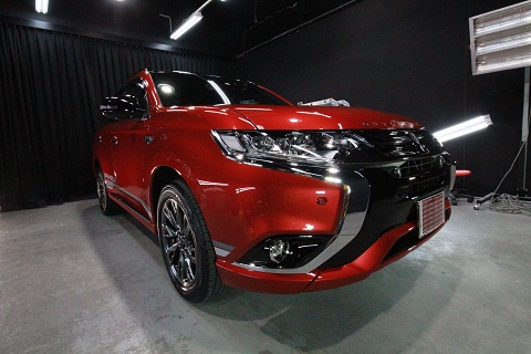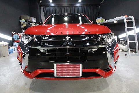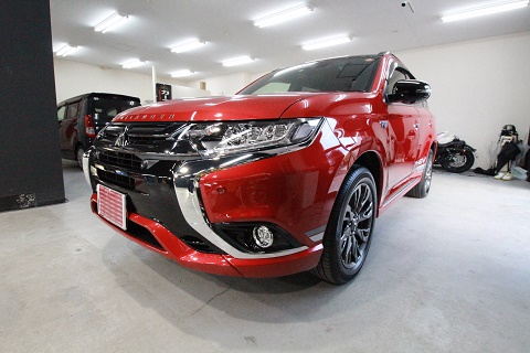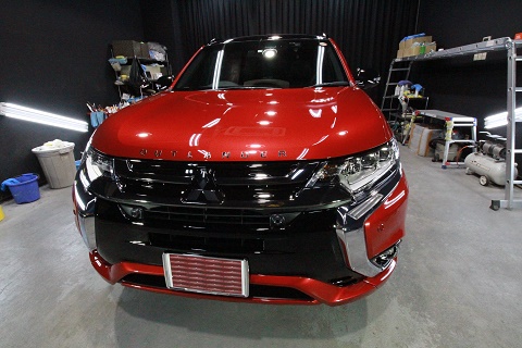 滋賀県より三菱アウトランダーのご入庫です!ボディカラーはレッドメタリック/ルーフブラックです!