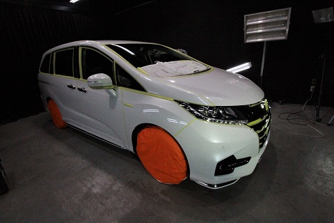 兵庫県川西市よりホンダオデッセイのご入庫です!ボディカラーはプラチナホワイトパール!施工は