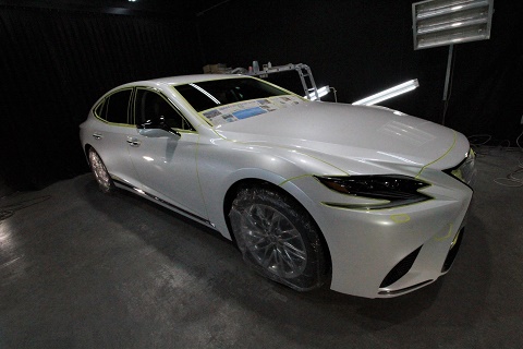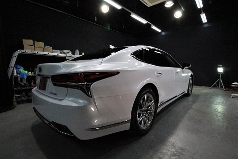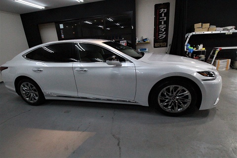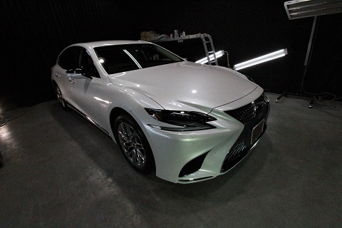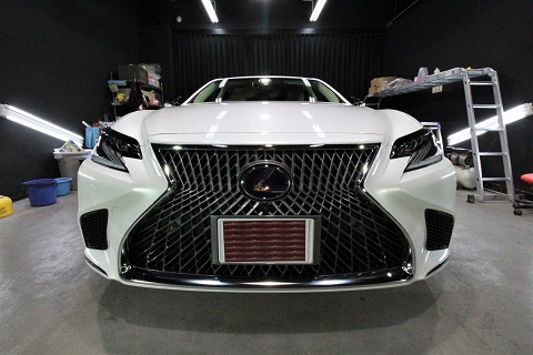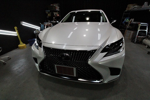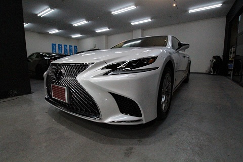 大阪市よりレクサスLS500hのご入庫です!ボディカラーはソニッククォーツ!施工はボディには