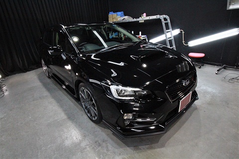 大阪市東成区よりスバルレヴォーグSTIのご入庫です!ボディカラーはクリスタルブラックシリカ!