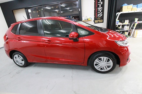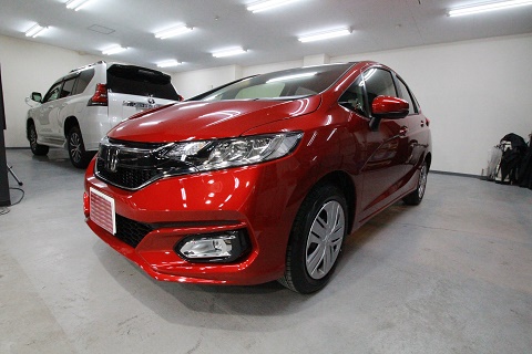 滋賀県よりホンダフィットのご入庫です!ボディカラーはプレミアムクリスタルレッドメタリック!