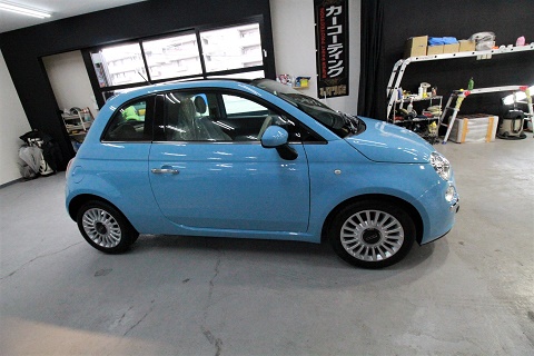 奈良県よりフィアット500をお持ち下さいました!ボディカラーはブルーヴォラーレ!施工は
