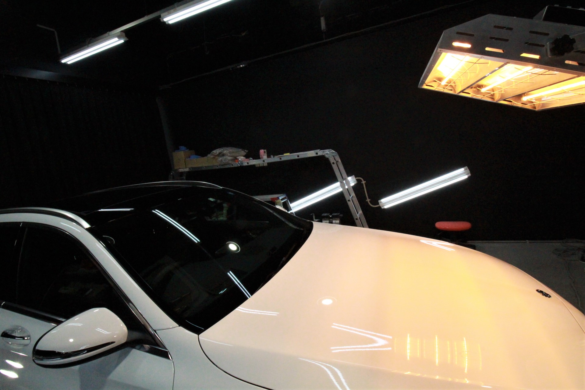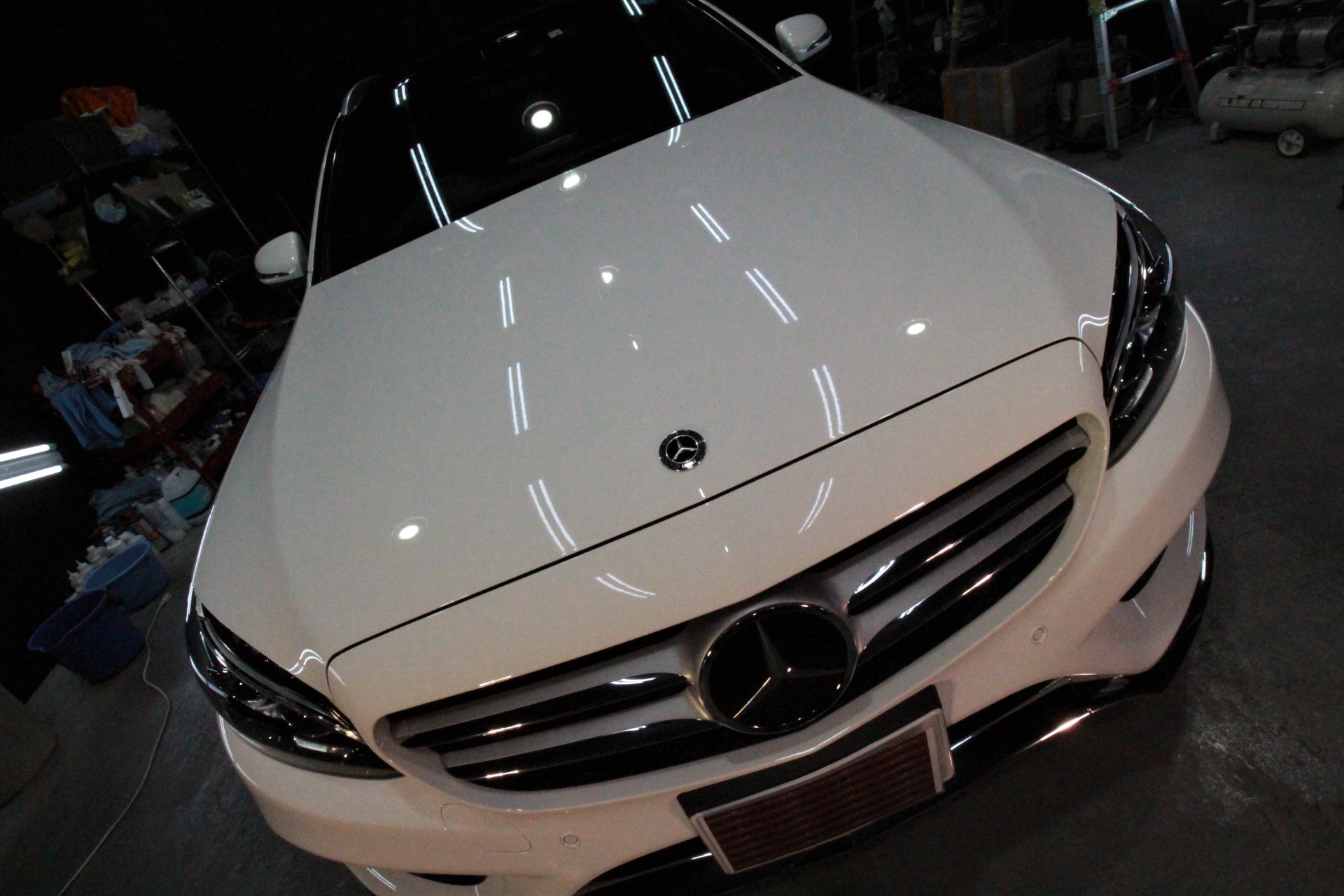 ホワイト!施工はボディにはハイモースコート/フロントガラス撥水ハイパービュー/ホイール
