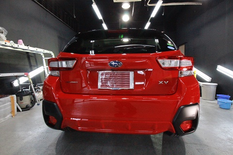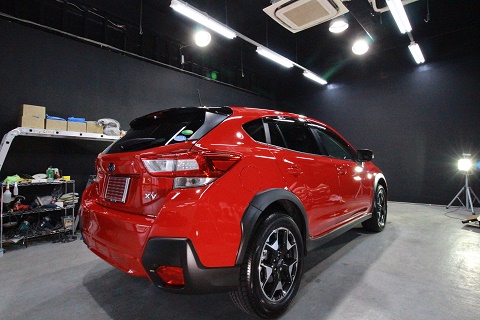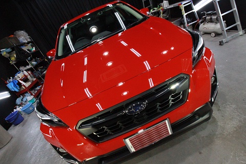 兵庫県よりスバルXVのご入庫です!ボディカラーはピュアレッドです!施工はボディには疎水性の
