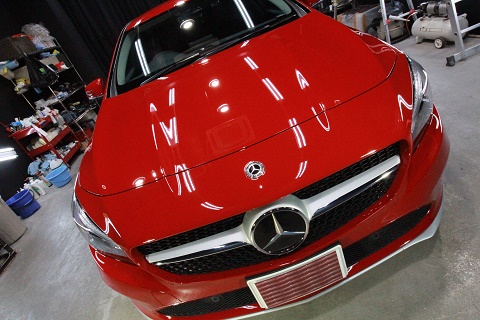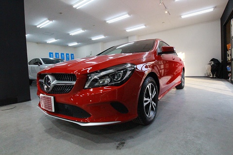 大阪市淀川区よりメルセデスベンツCLAのご入庫です!ボディカラーはジュピターレッド(ソリッド)