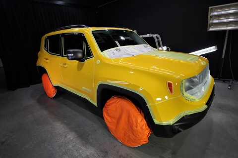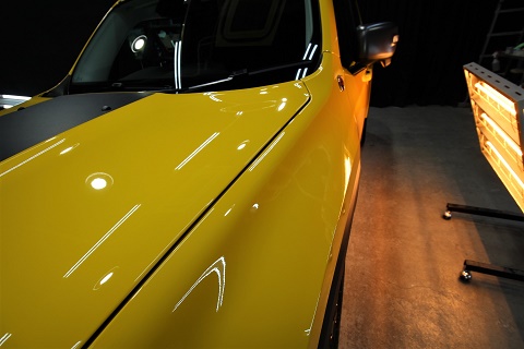 イエロー(ソリッド)です!施工はボディにはG’ZOXハイドロフィニッシュ/ホイールコーティング