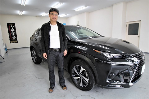 大阪府守口市よりレクサスNXのご入庫です!ボディカラーはグラファイトブラックガラスフレーク!
