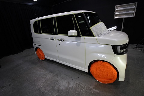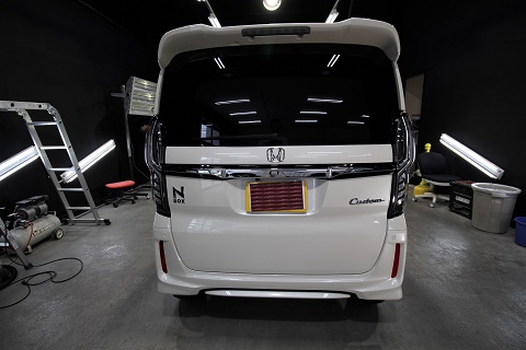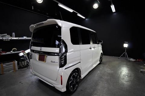 和歌山県よりホンダNボックスカスタムのご入庫です! ボディカラーはパールホワイト!施工は