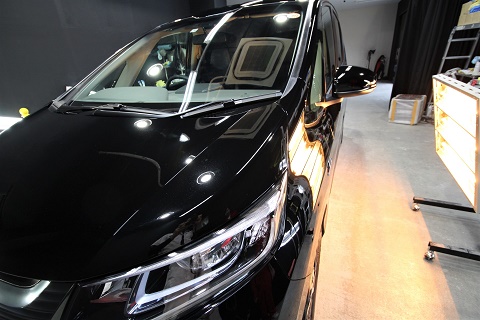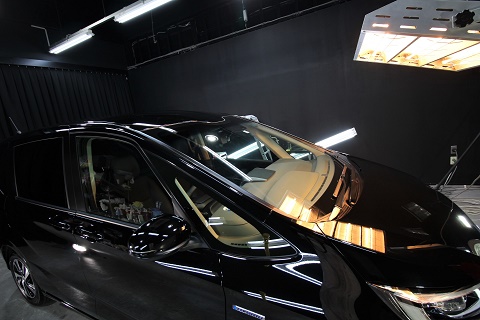 ブラックパール!施工はボディにはハイモースコート/フロント&リアガラスのハイパー