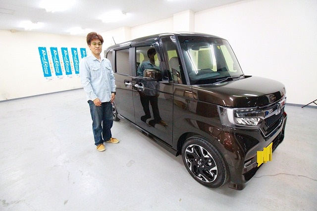 大阪府高槻市よりホンダNボックスカスタムのご入庫です!ボディカラーはグラマラスブ