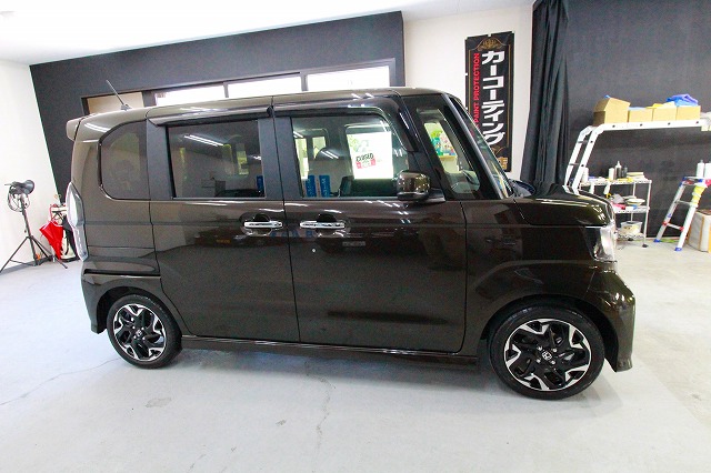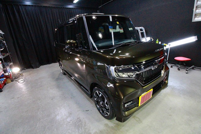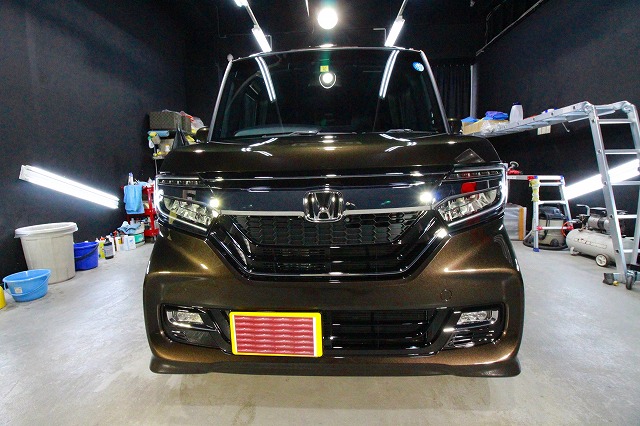 大阪府高槻市よりホンダNボックスカスタムのご入庫です!ボディカラーはグラマラスブ