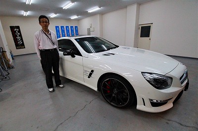 兵庫県宝塚市よりメルセデスベンツSL63 AMGのご入庫です!ボディカラーはダイアモンドホワイト!