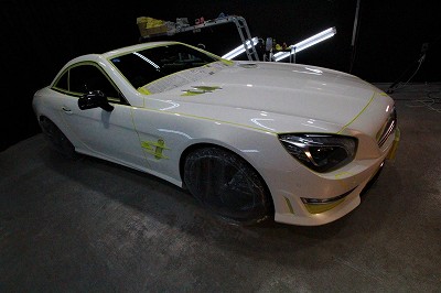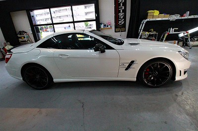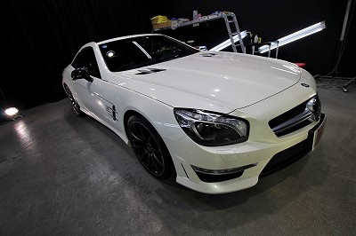 兵庫県宝塚市よりメルセデスベンツSL63 AMGのご入庫です!ボディカラーはダイアモンドホワイト!