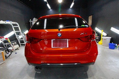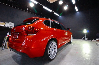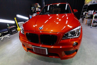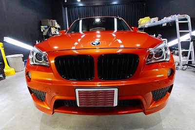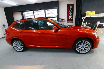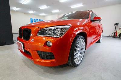 大阪府池田市よりBMW X1のご入庫です!ボディカラーはバレンシアオレンジメタリック!施工はボディには