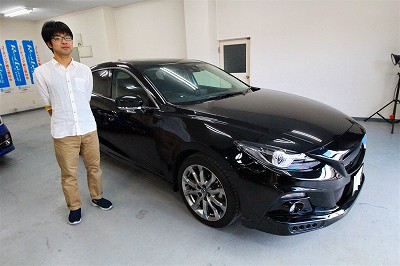 大阪府枚方市よりマツダアクセラスポーツのご入庫です!ボディカラーはジェットブラックマイカ!施工は