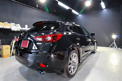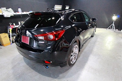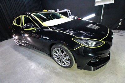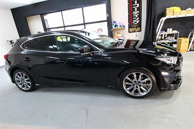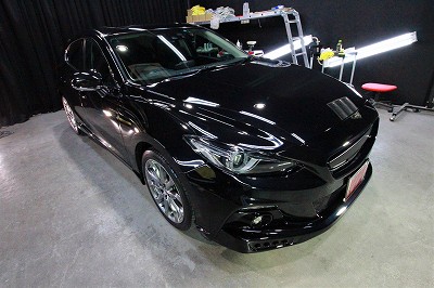 大阪府枚方市よりマツダアクセラスポーツのご入庫です!ボディカラーはジェットブラックマイカ!施工は