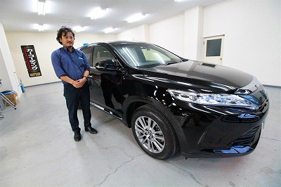 大阪府池田市よりトヨタハリアーのご入庫です!ボディカラーはトヨタのブラック202!施工はボディには