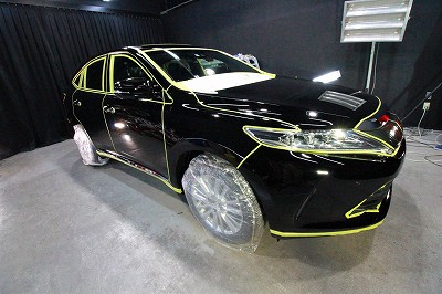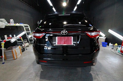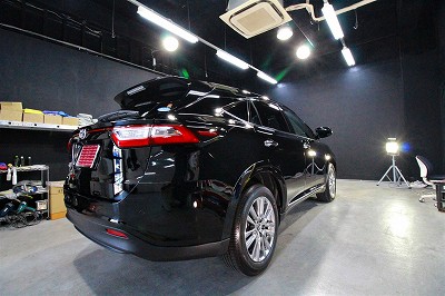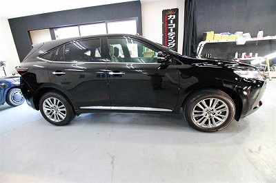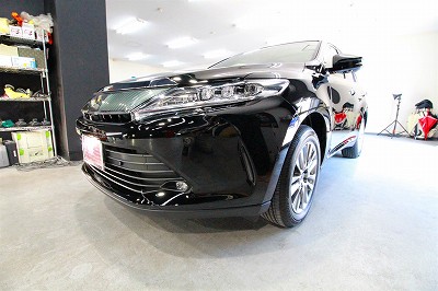 大阪府池田市よりトヨタハリアーのご入庫です!ボディカラーはトヨタのブラック202!施工はボディには