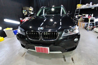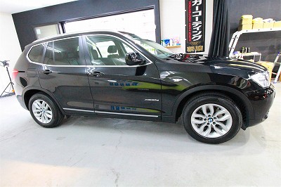 大阪府八尾市よりBMW X3のご入庫です!ボディカラーはブラックサファイアメタリック!施工はボディには