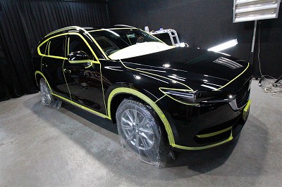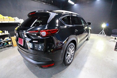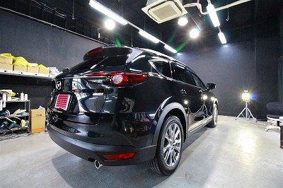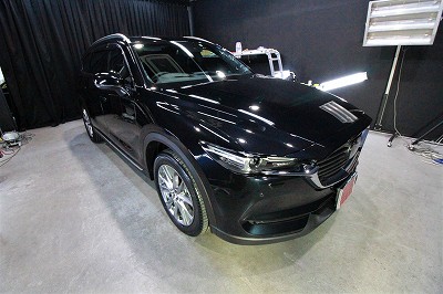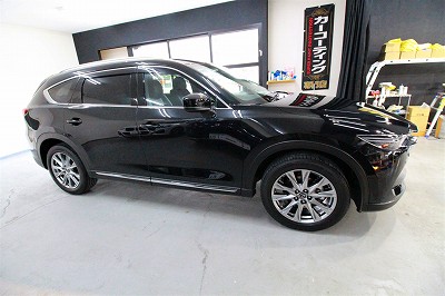 大阪府岸和田市よりマツダCX8のご入庫です!ボディカラーはジェットブラックマイカ!施工はボディには