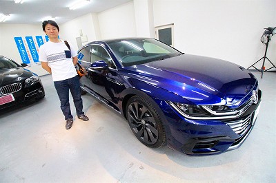 大阪府箕面市よりVWアルテオンのご入庫です!ボディカラーはアトランティックブルーメタリック!施工はボ