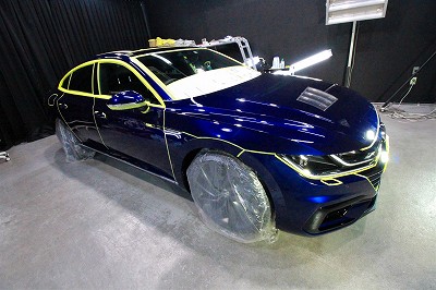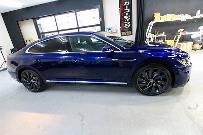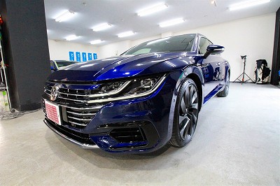 大阪府箕面市よりVWアルテオンのご入庫です!ボディカラーはアトランティックブルーメタリック!施工はボ