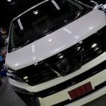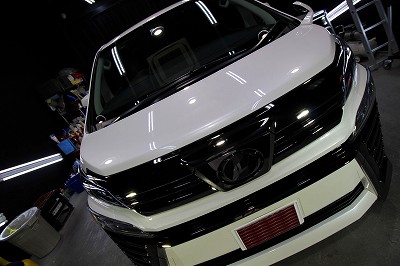 ホワイトパールクリスタルシャイン!施工はボディにはG’ZOX艶プラス/ホイールコーティング/フロント