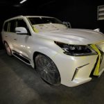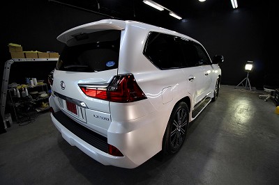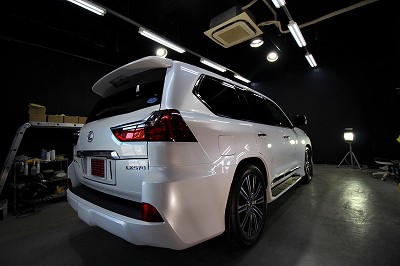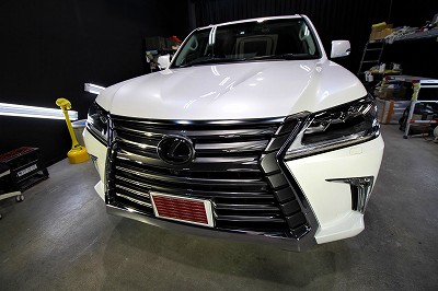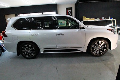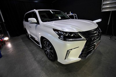 大阪府豊中市よりレクサスLX570のご入庫です!ボディカラーはソニッククォーツ!施工はボディには