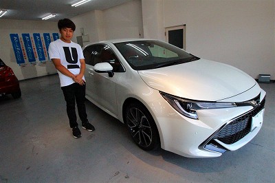 大阪府岸和田市より新型トヨタカローラスポーツのご入庫です!ボディカラーはホワイトパールクリスタル
