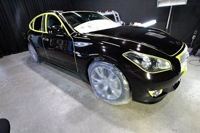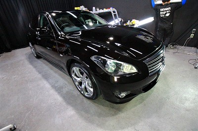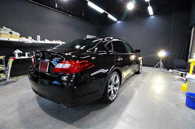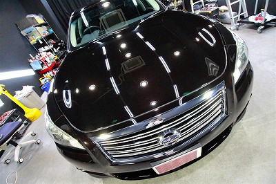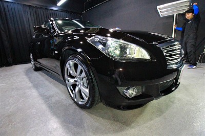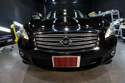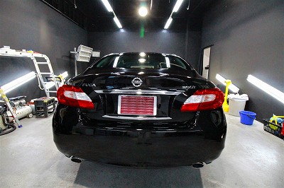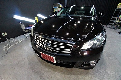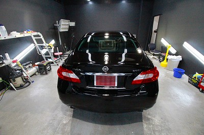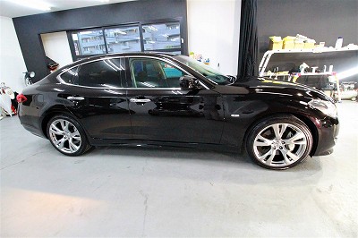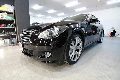 大阪府吹田市より日産フーガのご入庫です!ボディカラーはブラックパール!施工はボディにはハイモース