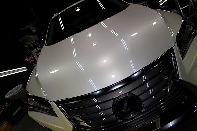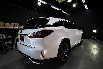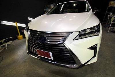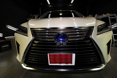 大阪府よりレクサスRX450HLのご入庫です!ボディカラーはソニッククォーツ!施工はボディにはハイモース