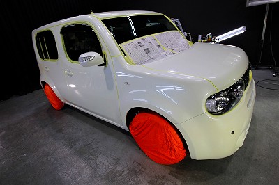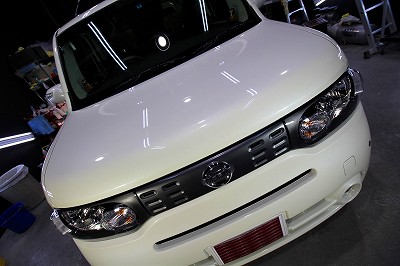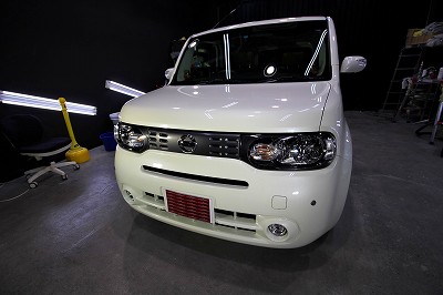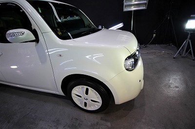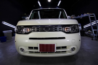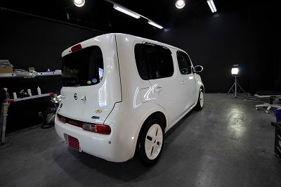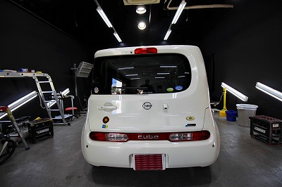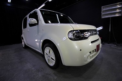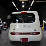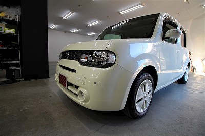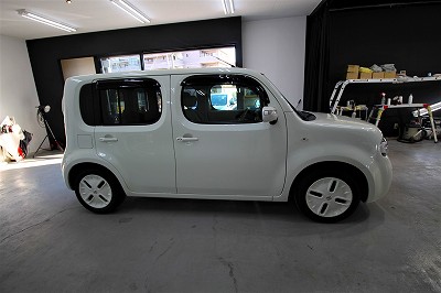 兵庫県尼崎市より日産キューブのご入庫です!ボディカラーはブリリアントホワイトパール!施工はボディには