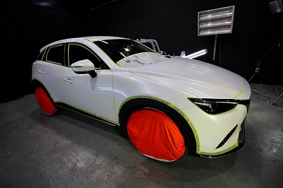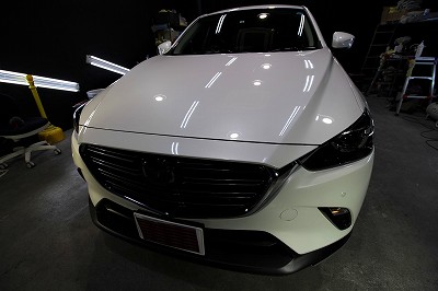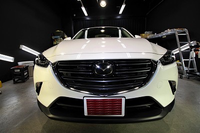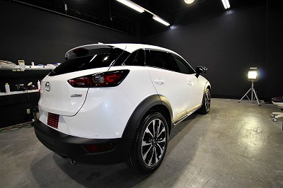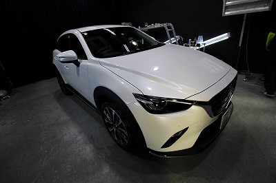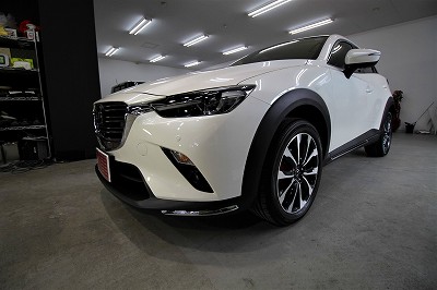 大阪府豊中市よりマツダCX3のご入庫です!ボディカラーはスノーフレイクホワイトパールマイカ!施工は