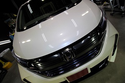 カラーはホワイトオーキッドパール!施工はボディにはG’ZOX艶プラス/ホイールコーティング/フロント