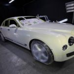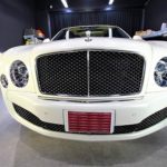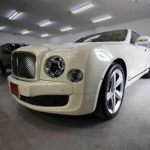奈良県よりベントレーミュルザンヌスピードのご入庫です!ボディカラーはパールホワイト。施工はボディには